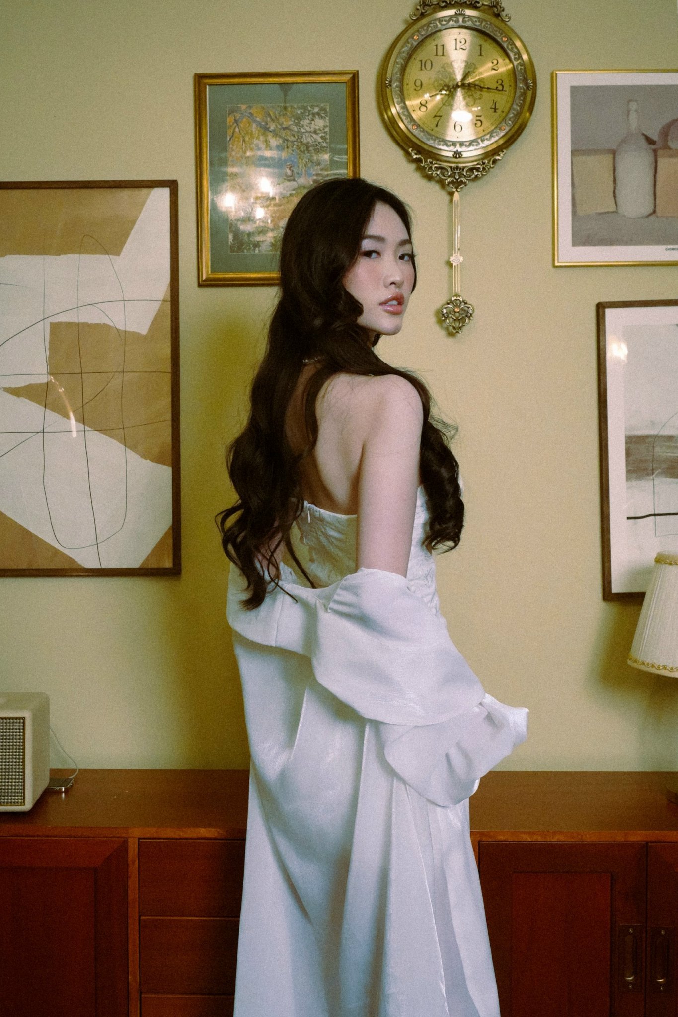 DAHLIA HIDDEN FLORAL DRESSMaterial: Meticulously embroidered brocade fabric.