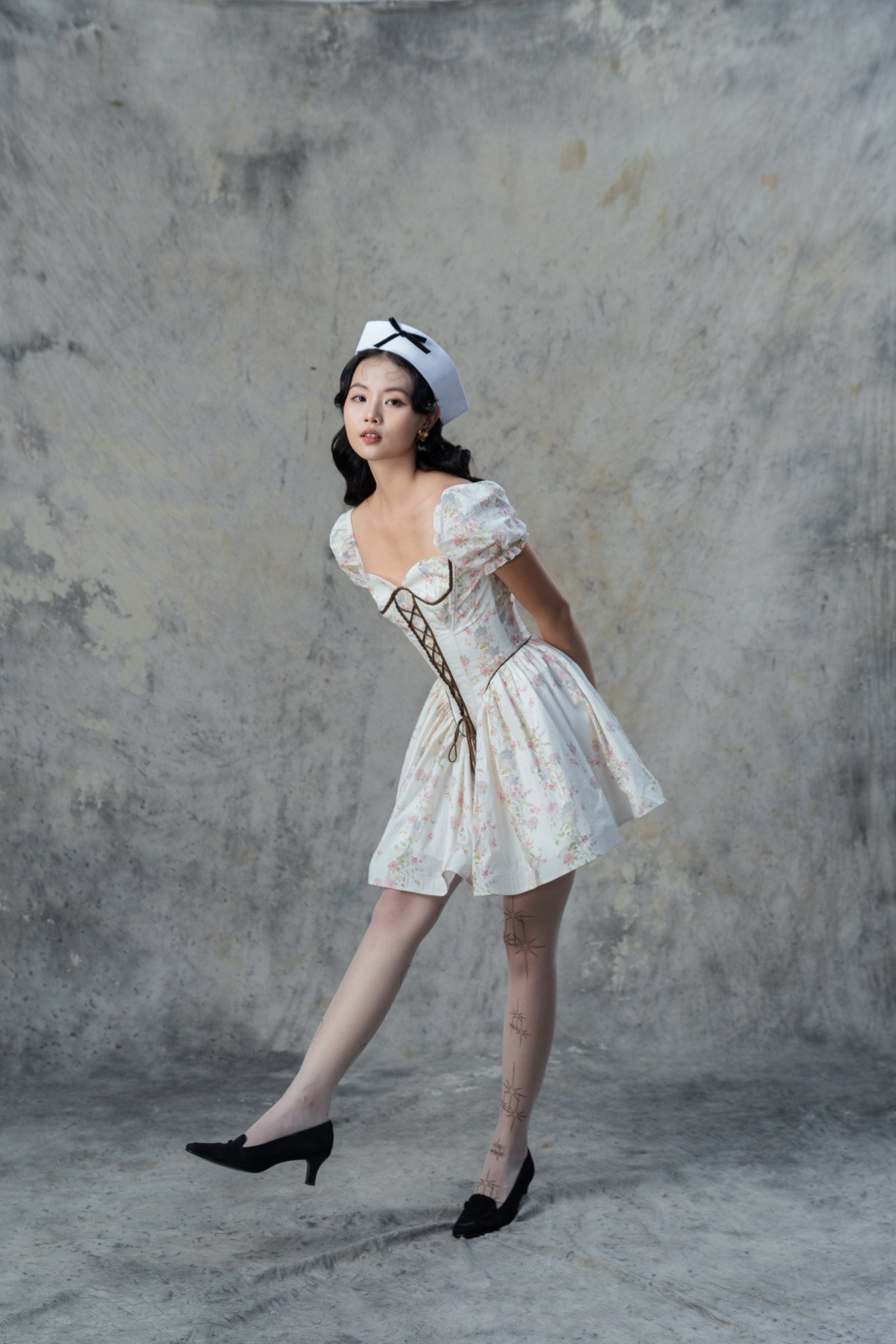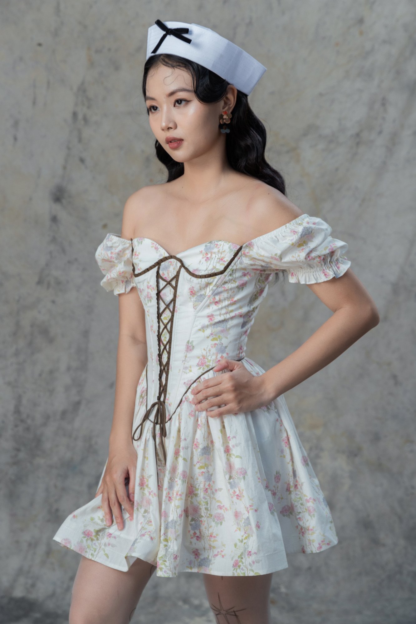 • Thiết kế: Dáng váy ngắn, thân trên thiết kế kiểu corset độc đáo, tôn lên vẻ đẹp tự nhiên và vóc dáng nhỏ nhắn.