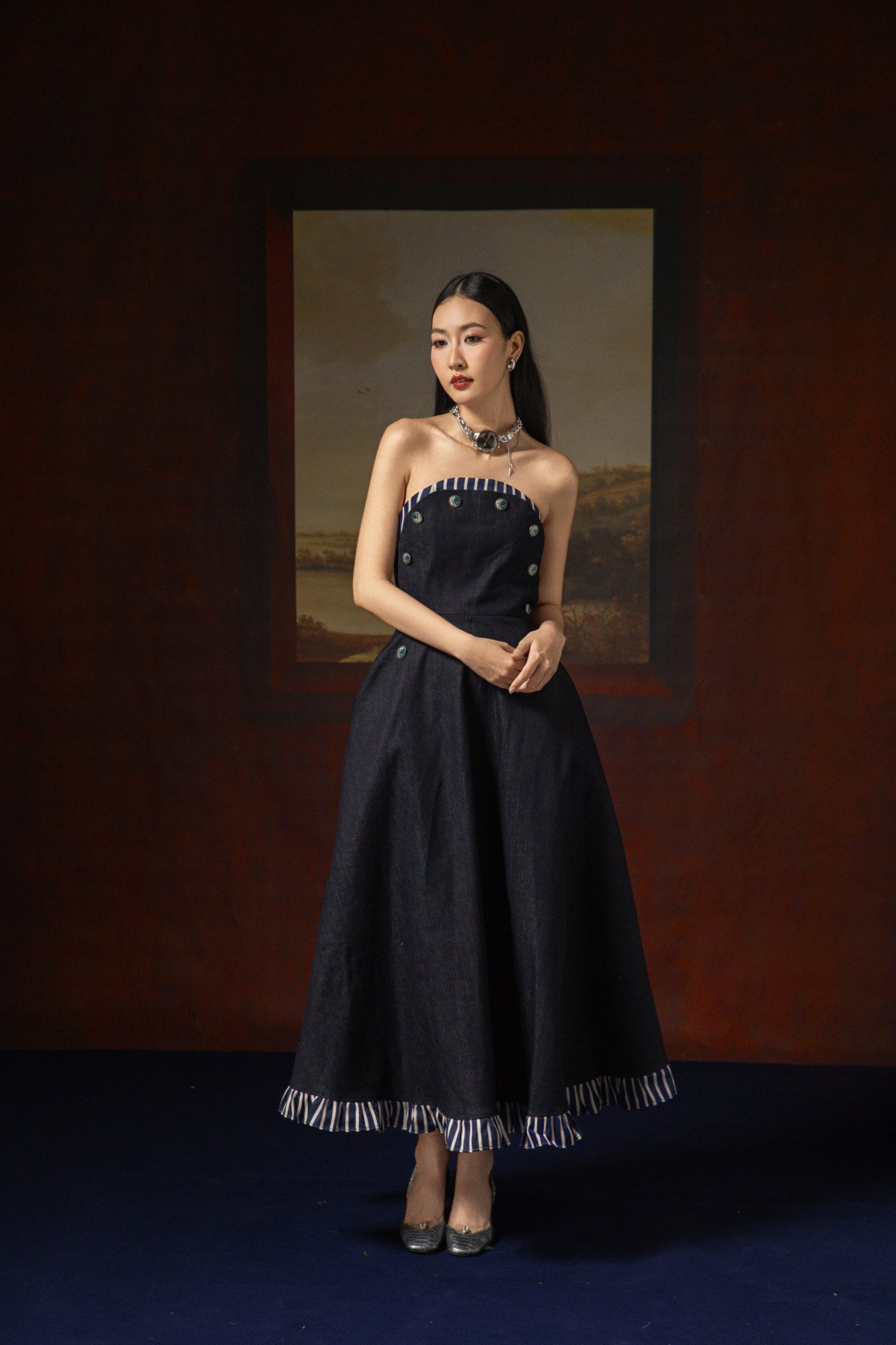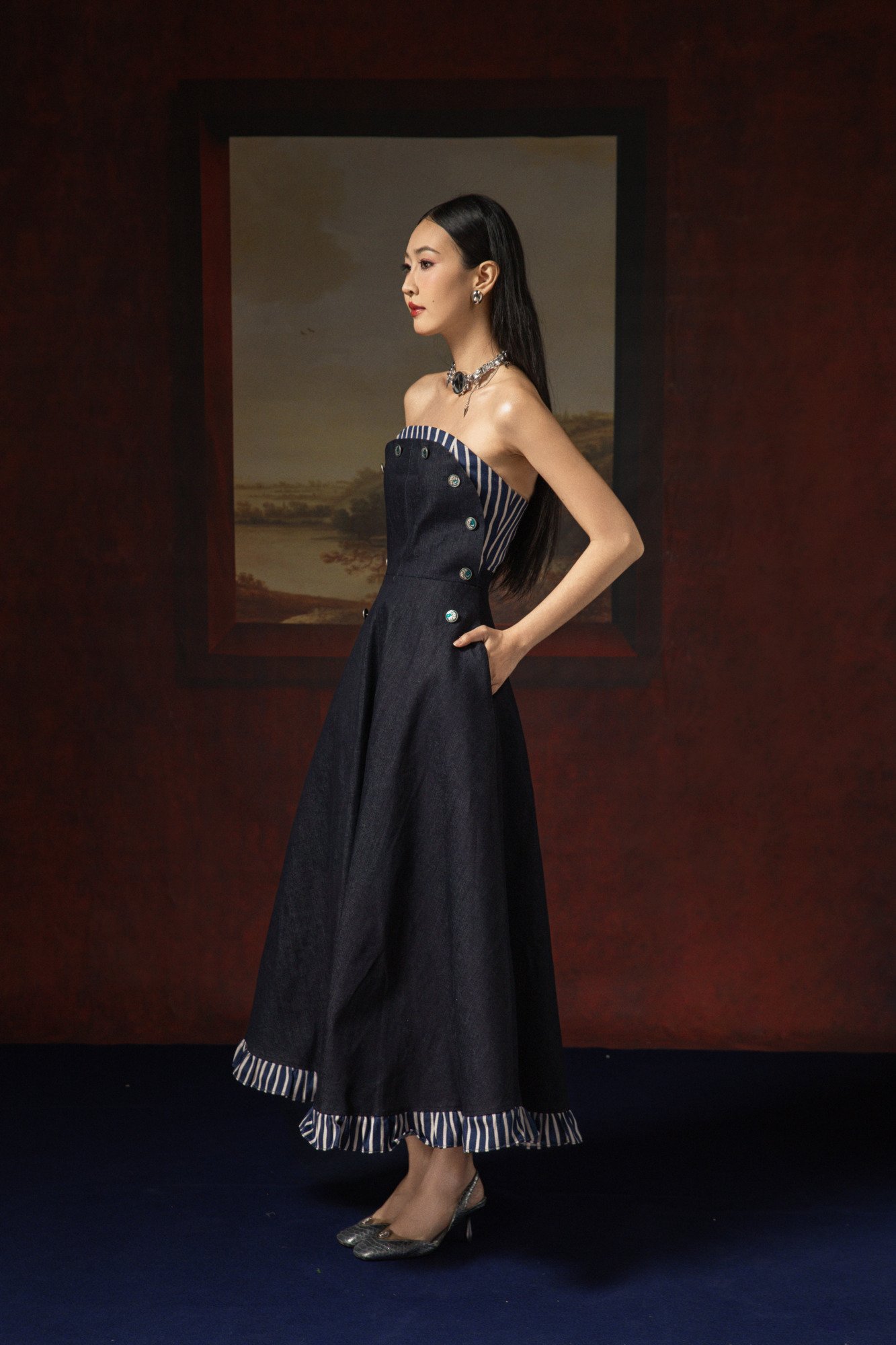 Chân váy bung nhẹ, gợi hình ảnh sóng biển mùa hè.
