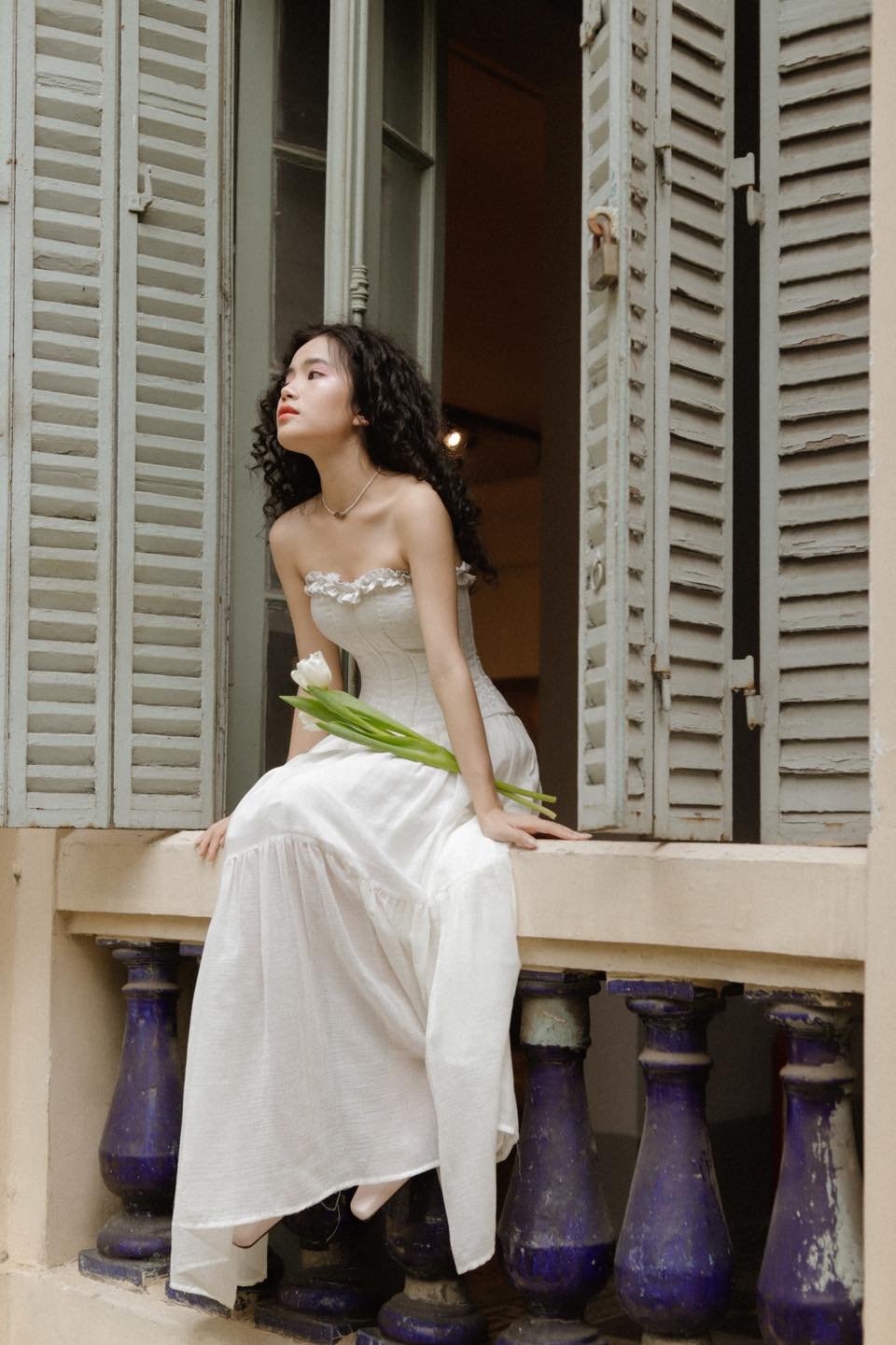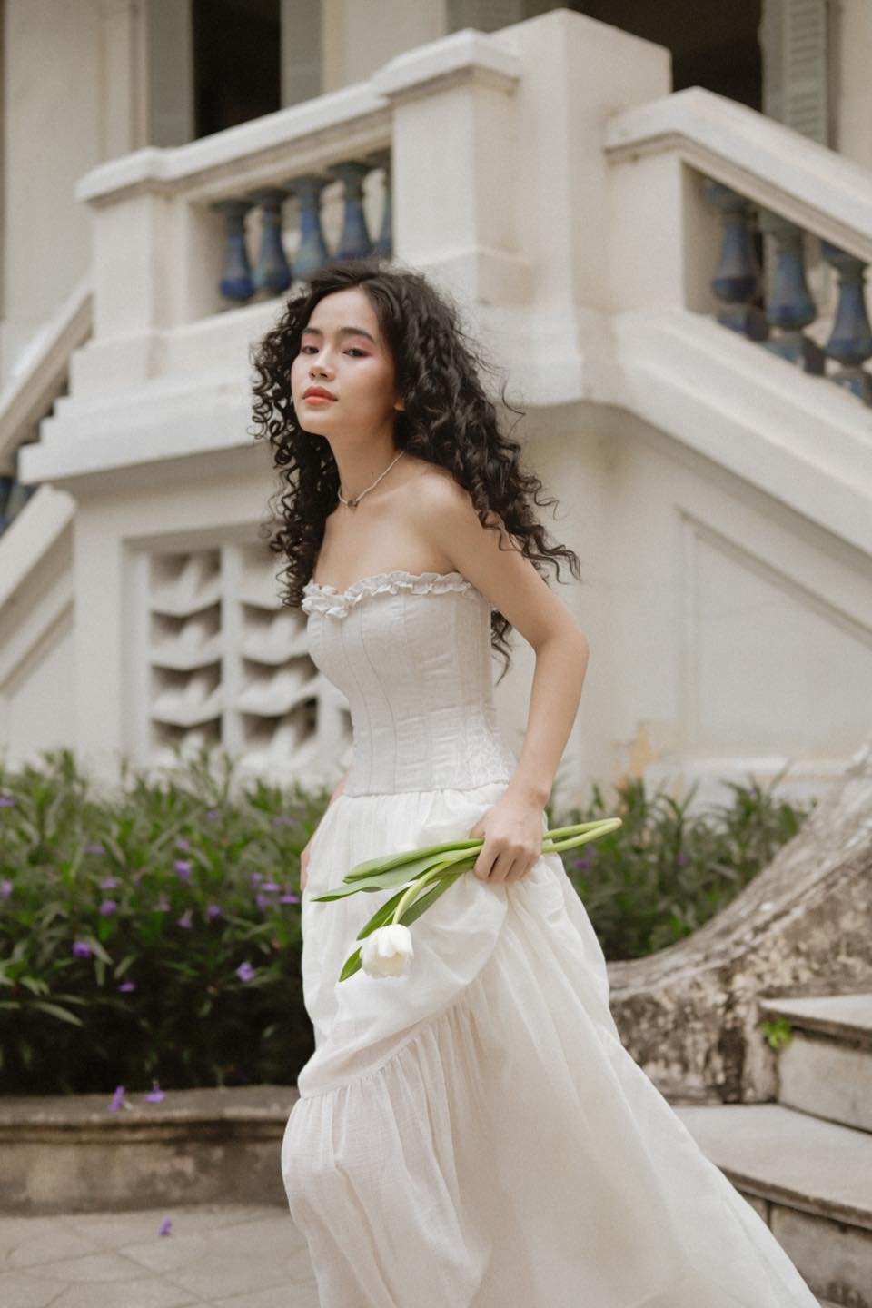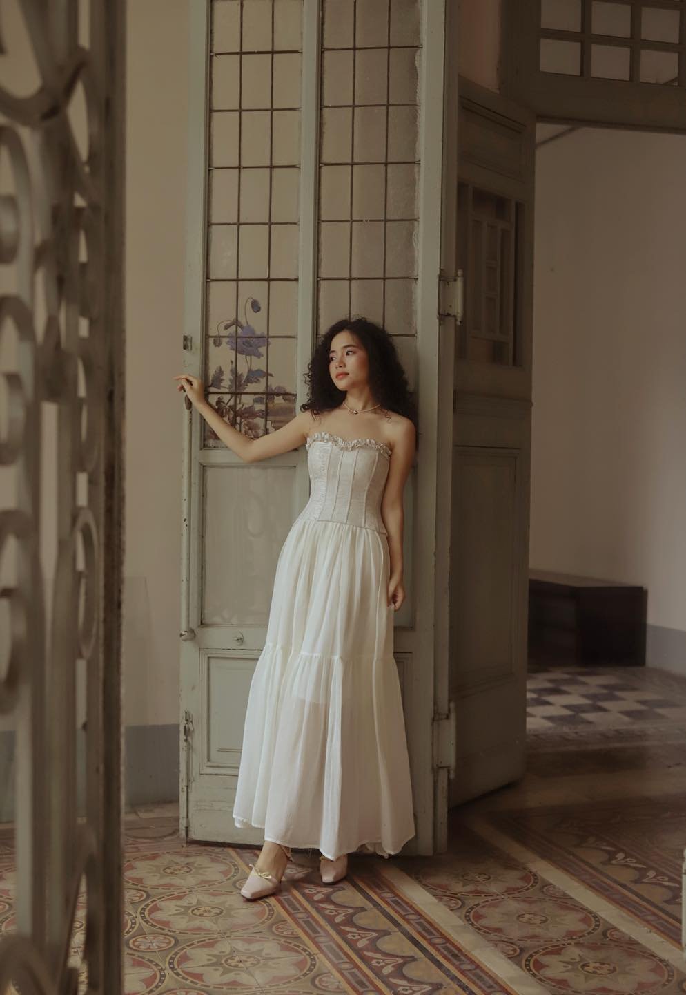 • Thiết kế: Dáng corset có dây, tôn eo thon gọn. Phối hợp với chân váy dài xếp tầng bay bổng.