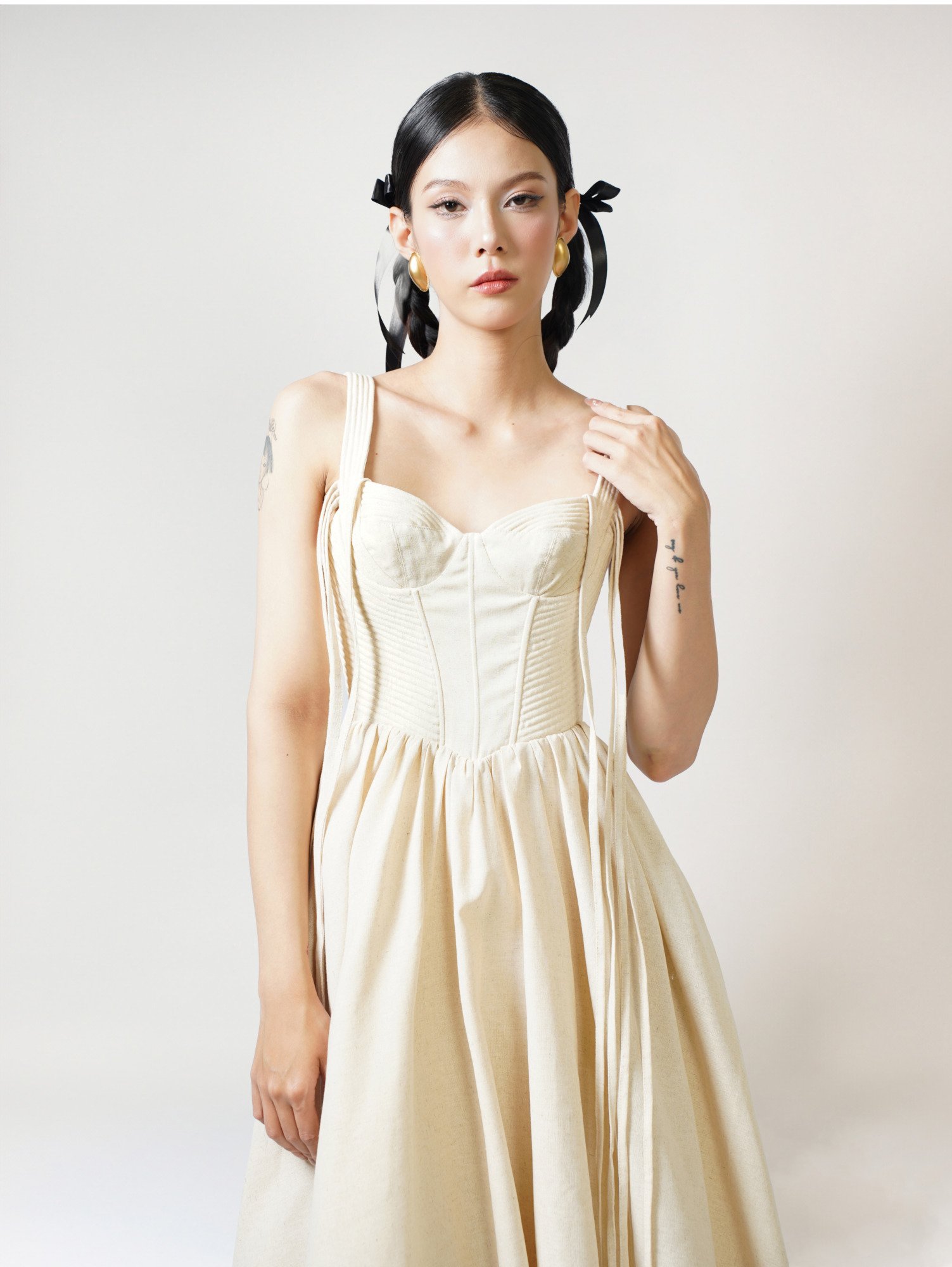 Thiết kế: Thân áo corset với đường dằn nổi tinh xảo; tùng váy dáng bí hot trend độc đáo.