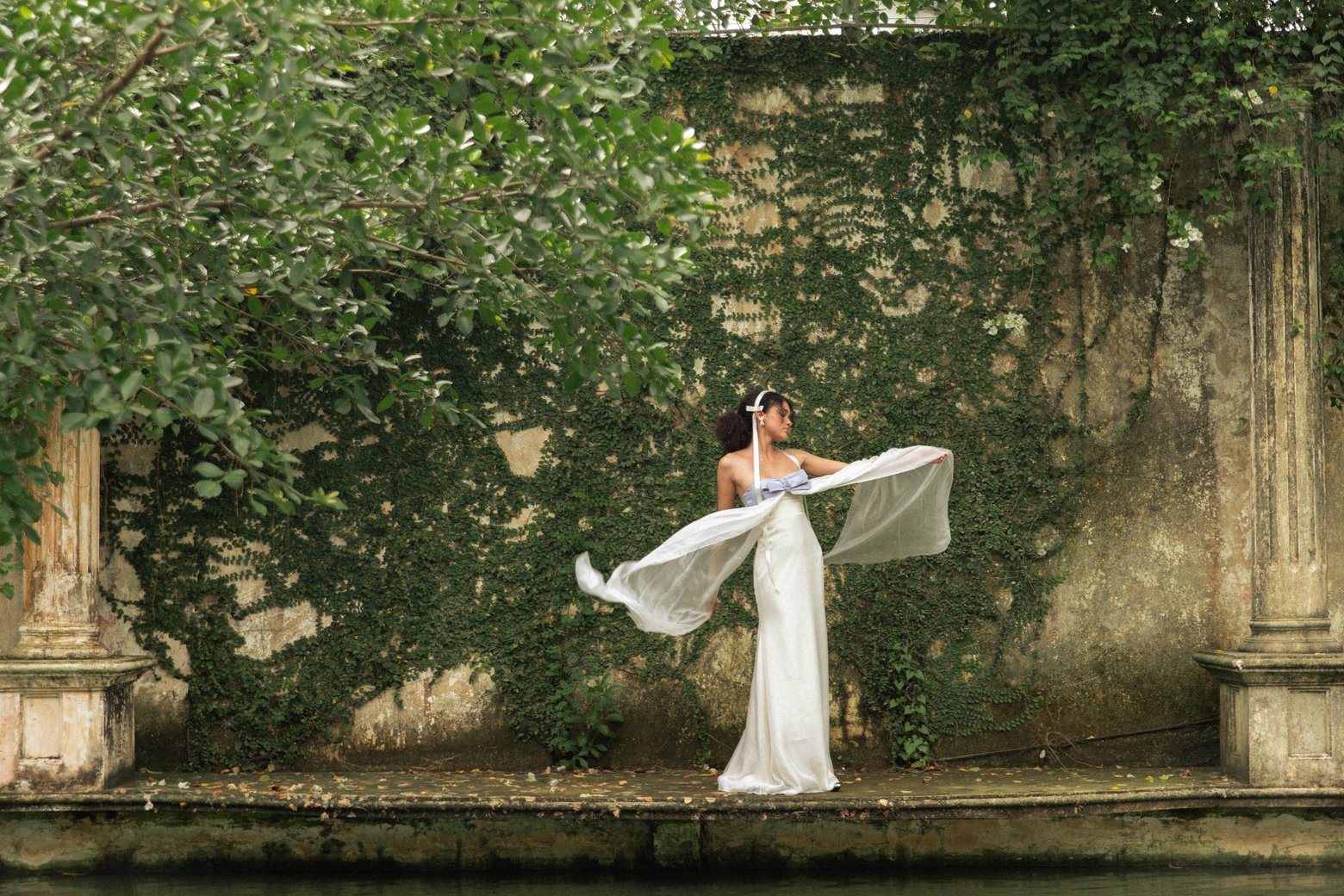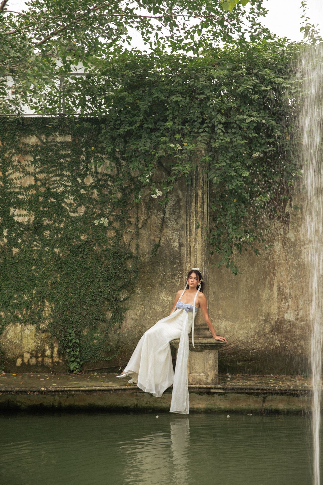 Chất liệu: Lụa chiffon cao cấp, màu kem bán trong suốt, mềm mại và uyển chuyển.